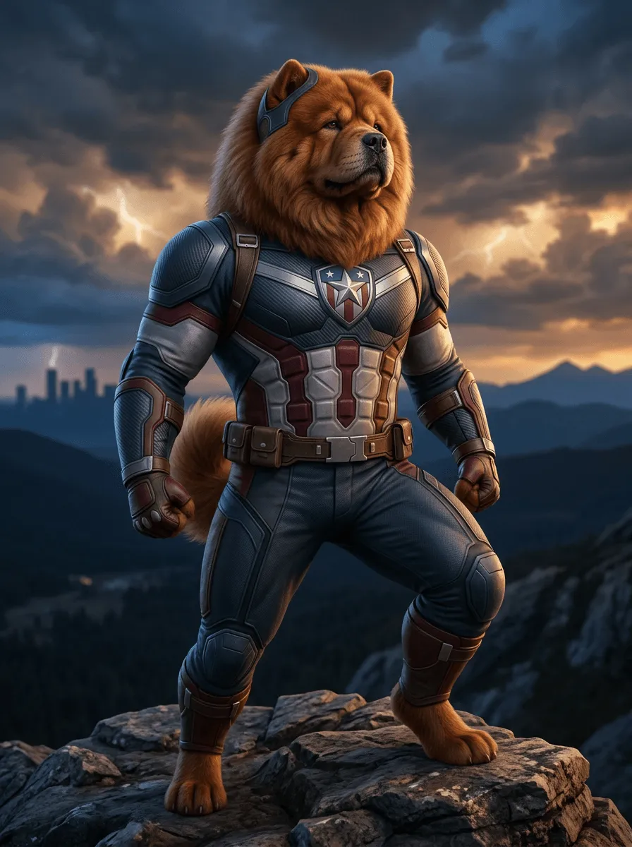 Futuristic Armored Chow Chow Superhero