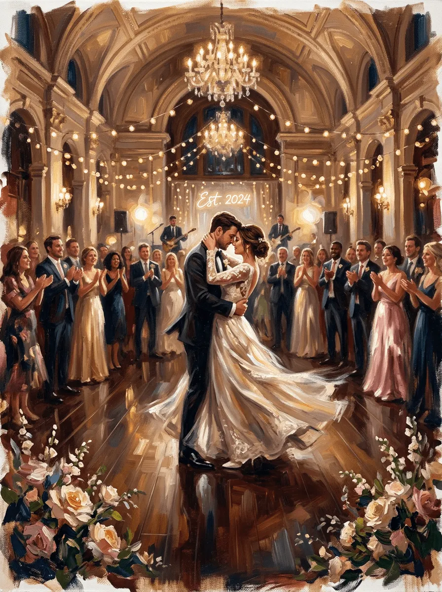 Oil Painting Grand Ballroom Wedding Kiss