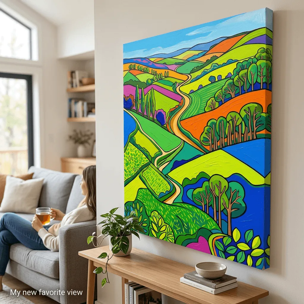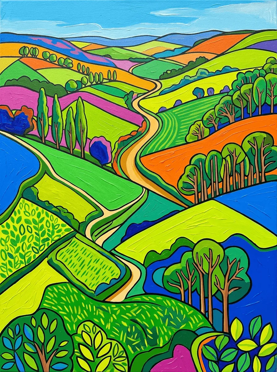 Vibrant Acrylic Rolling Hills Landscape