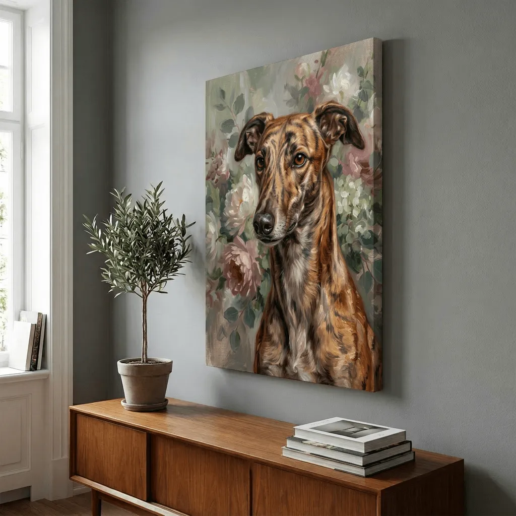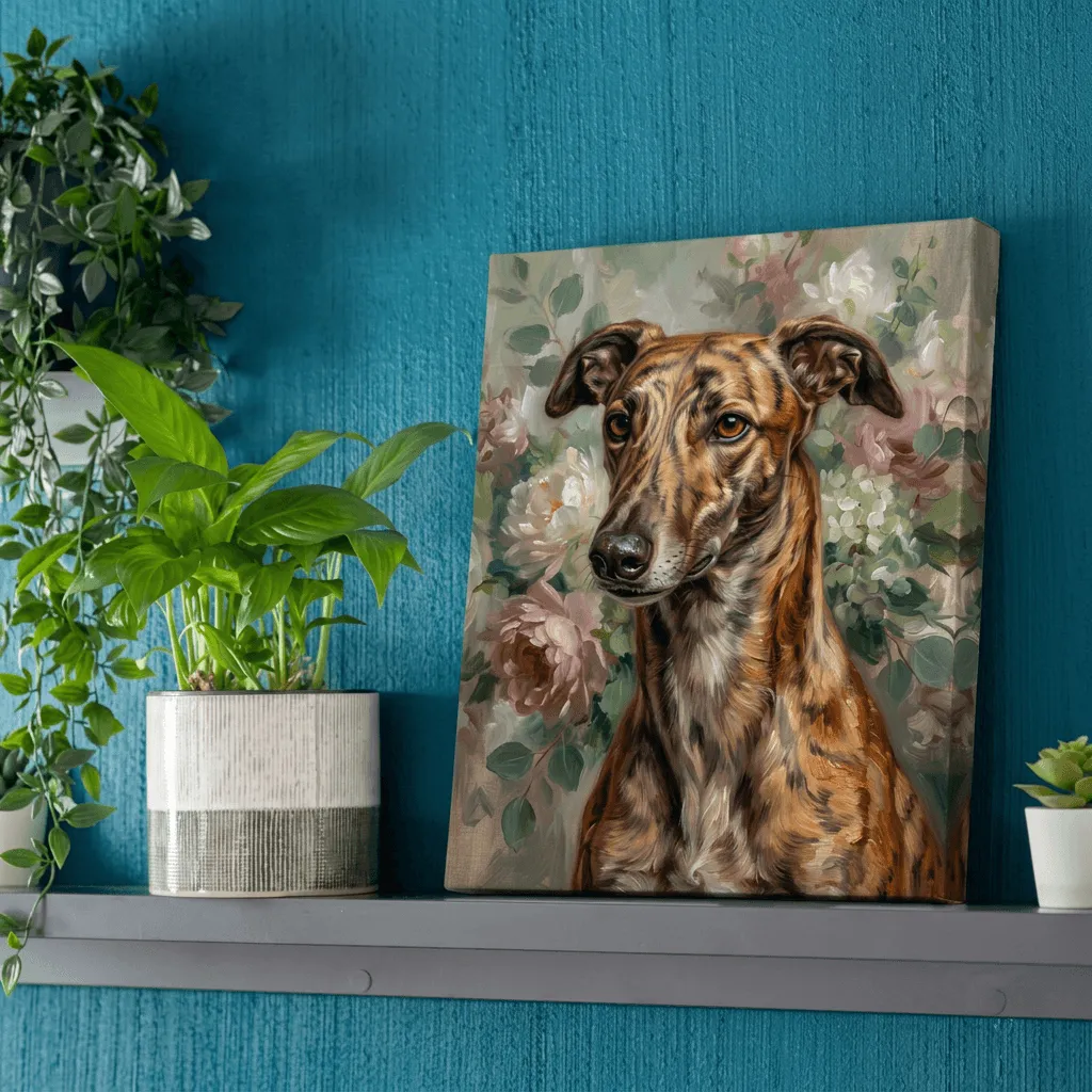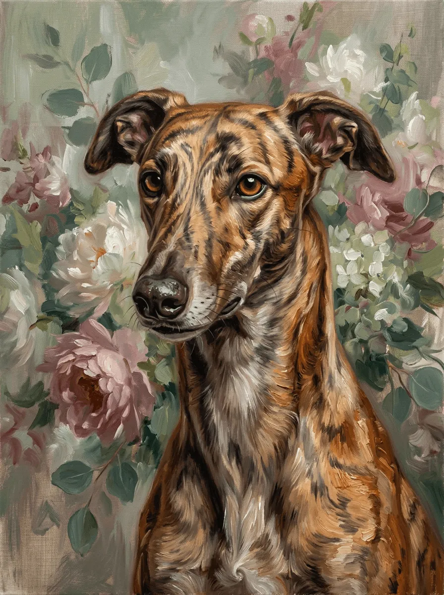 Oil Painting Dog Floral Garden Portrait