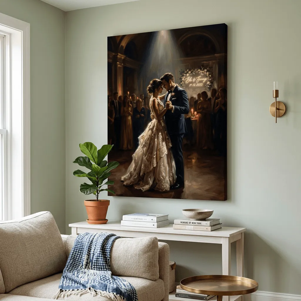 Oil Painting First Dance Golden Light Wedding