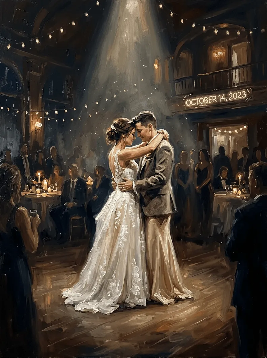 Oil Painting First Dance Wedding Portrait