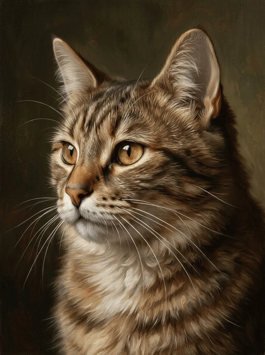 Realistic Oil Portrait Tabby Cat Golden Eyes