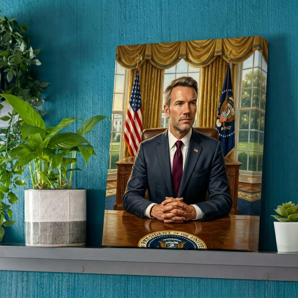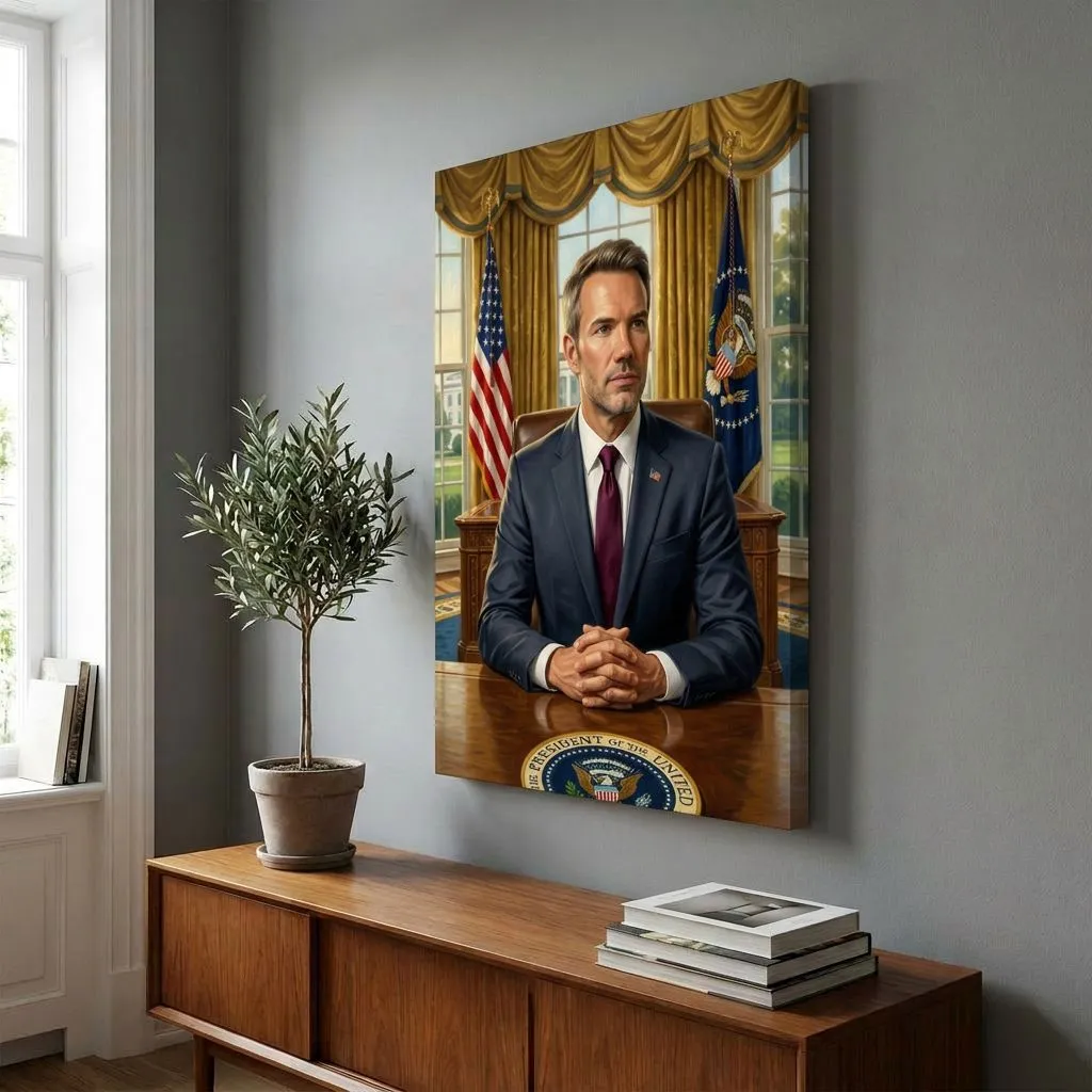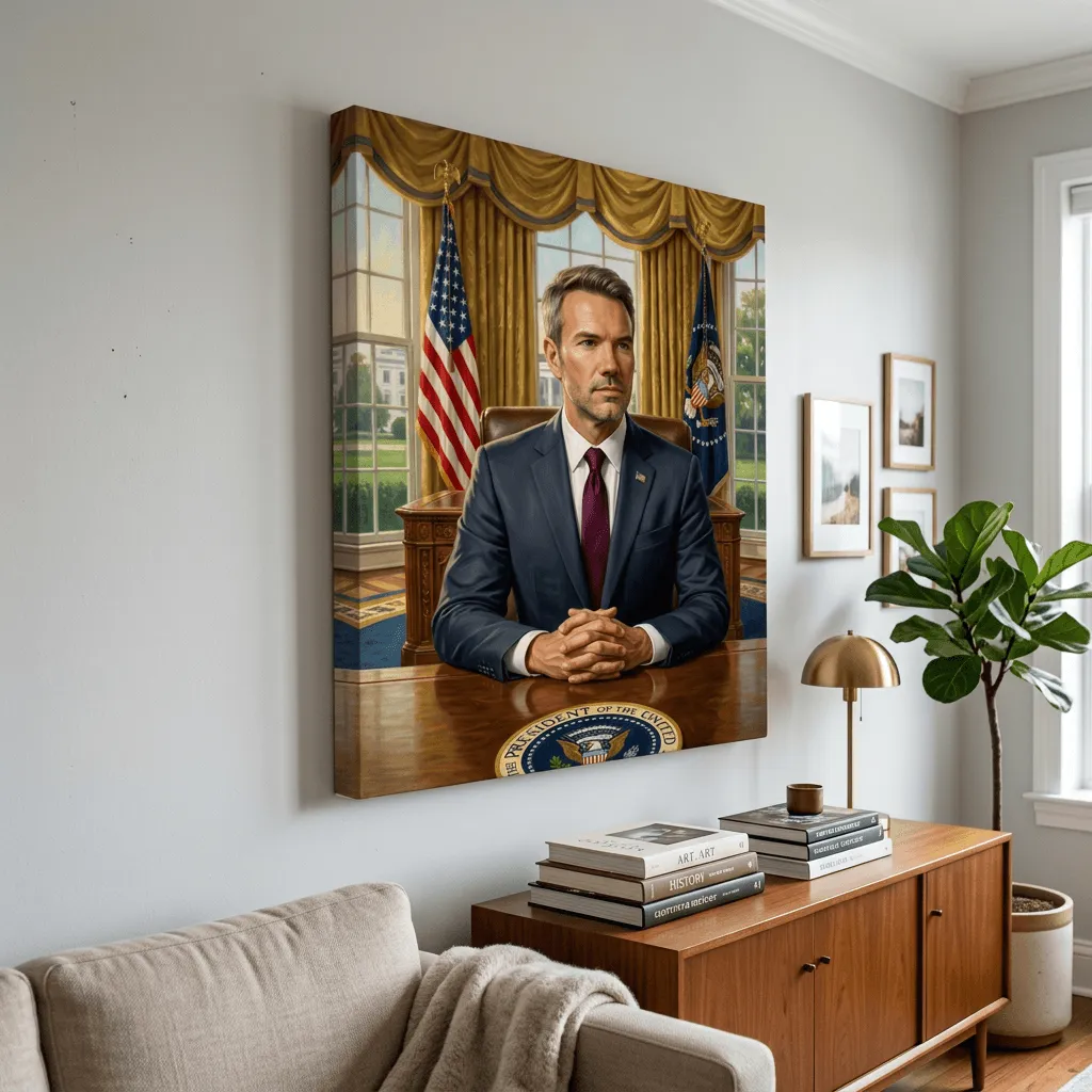 Realistic Oil Portrait Oval Office Executive