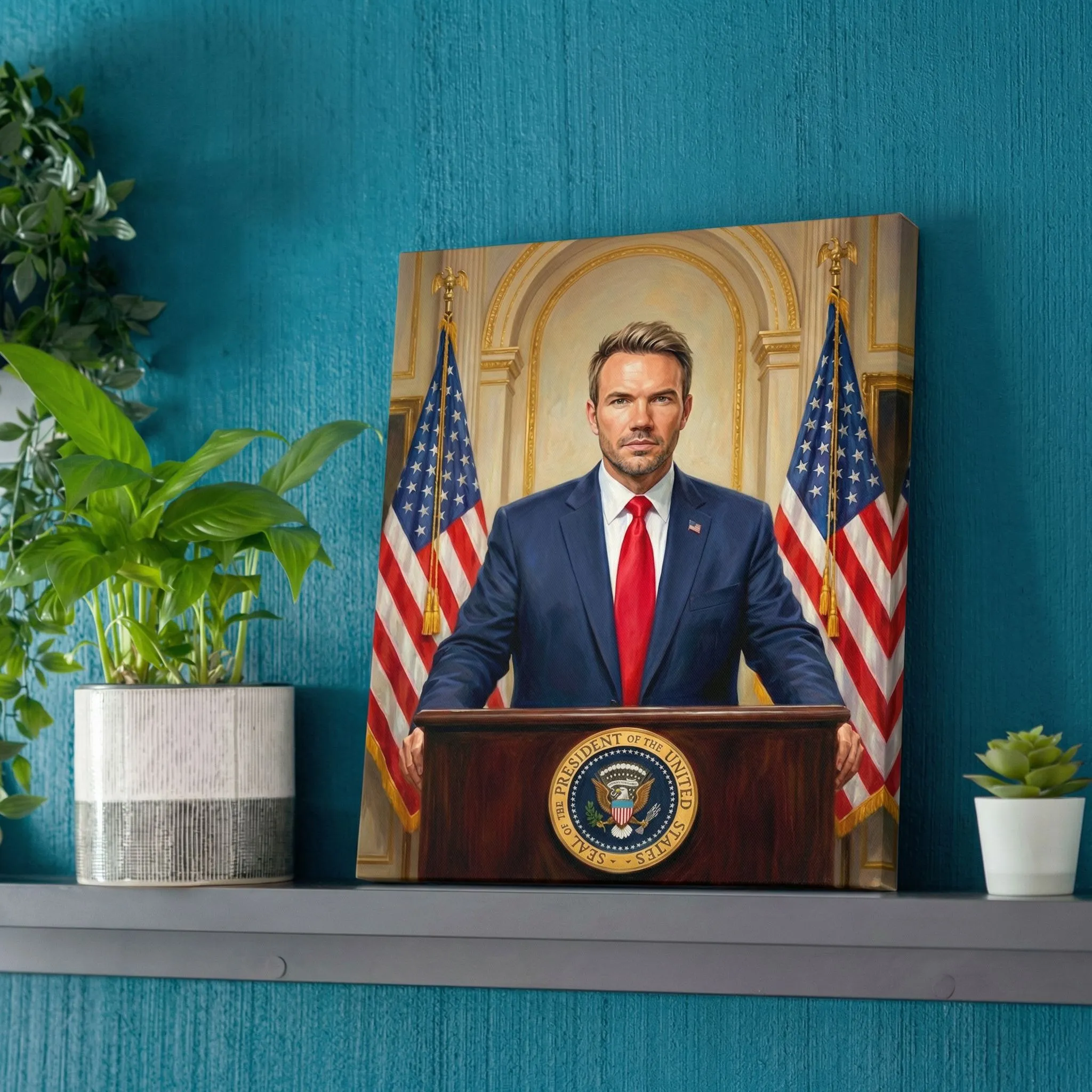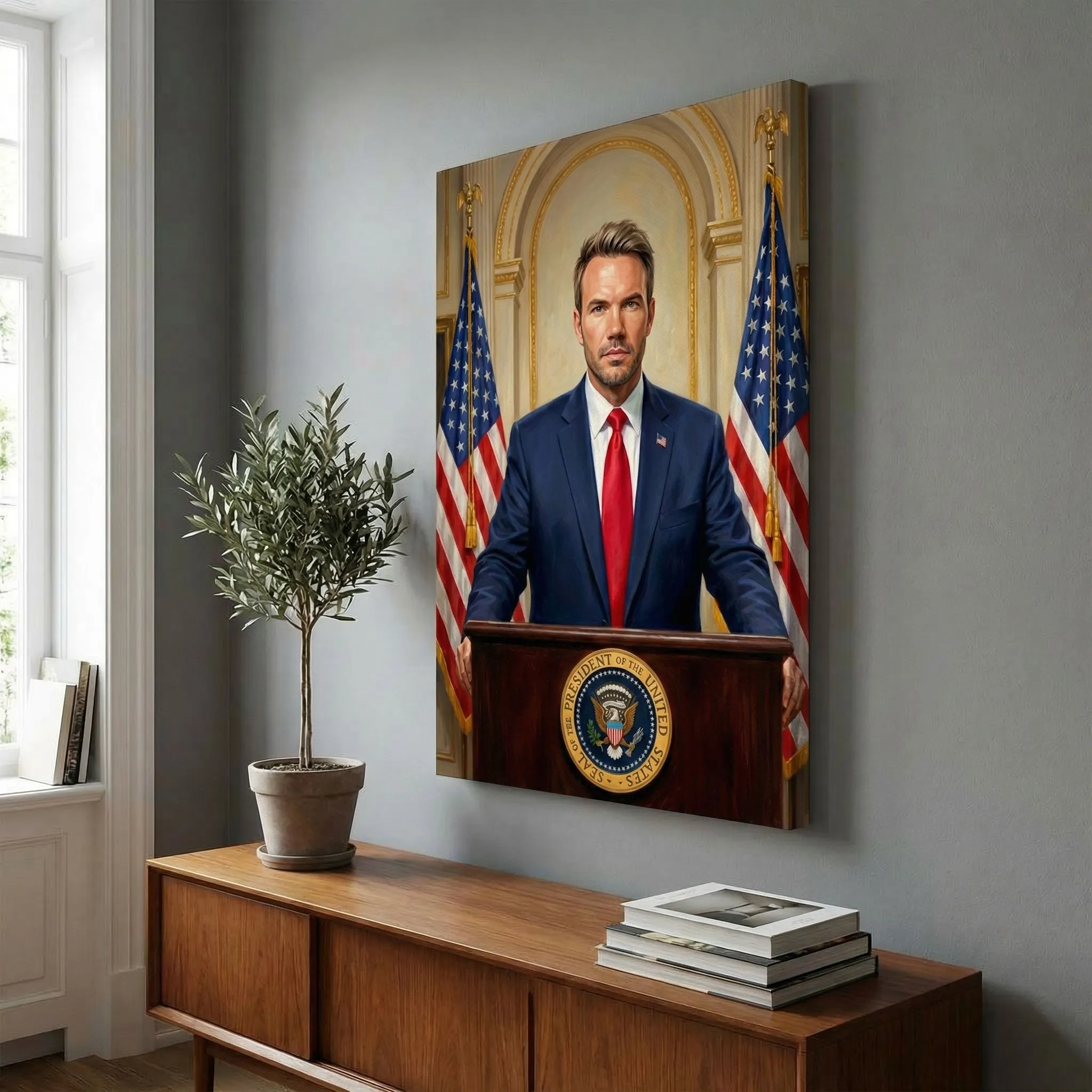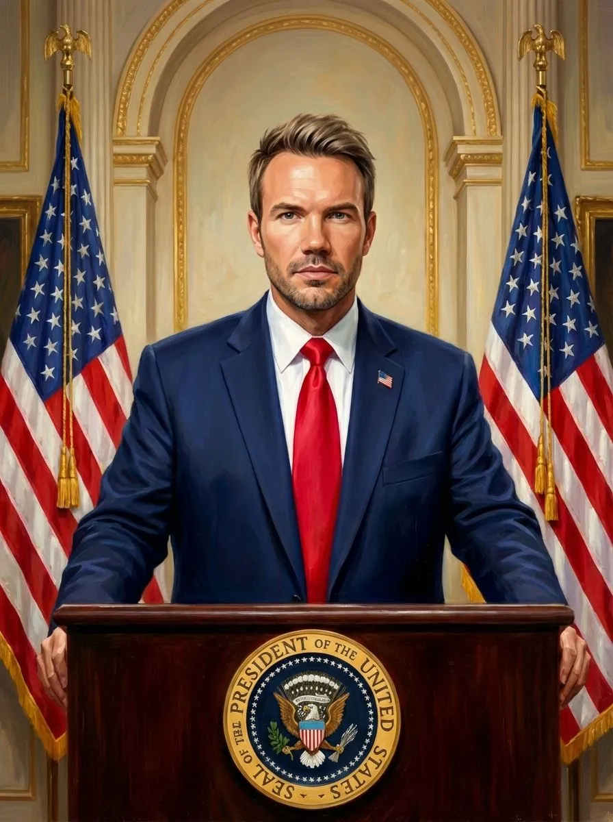 Realistic Oil Portrait Presidential Podium