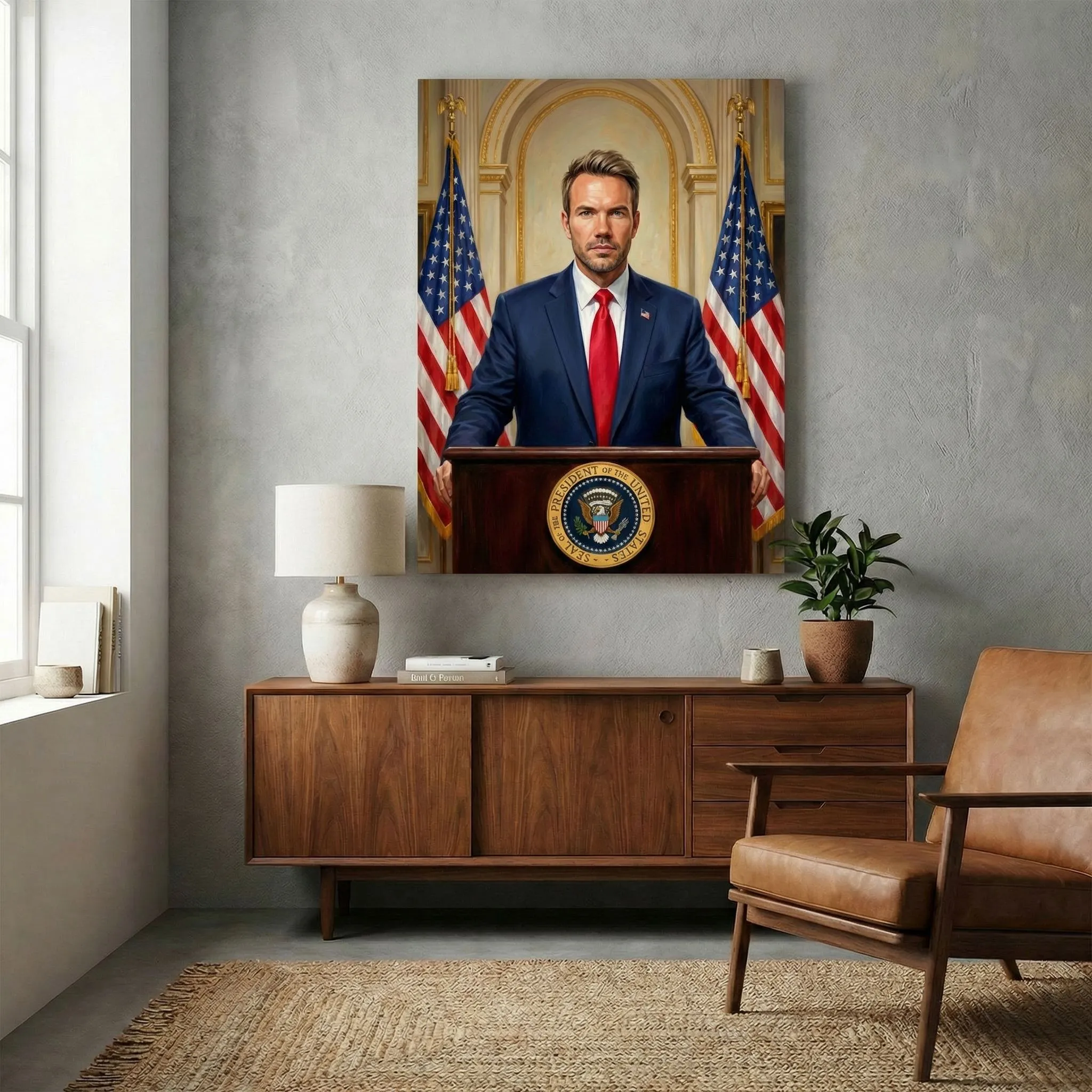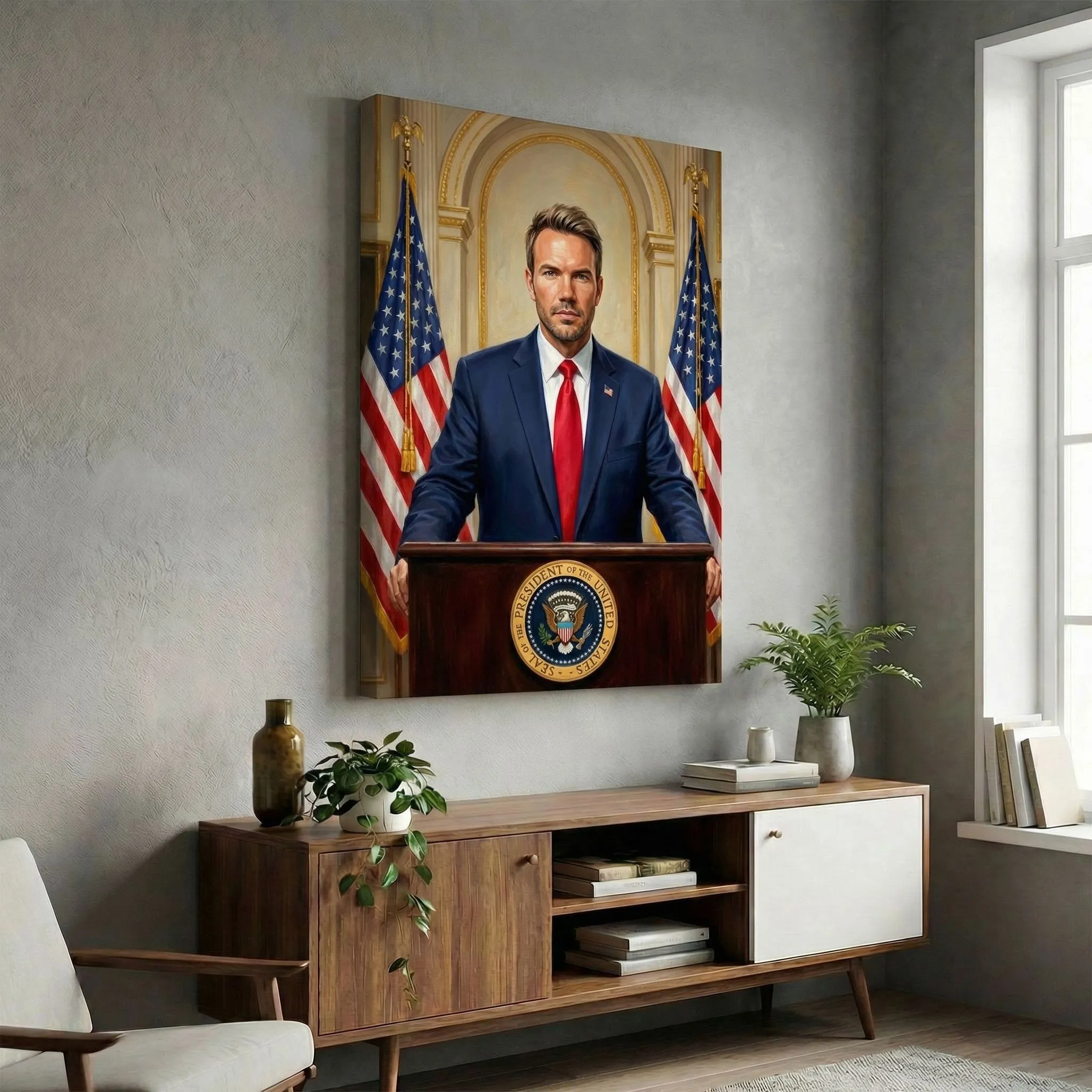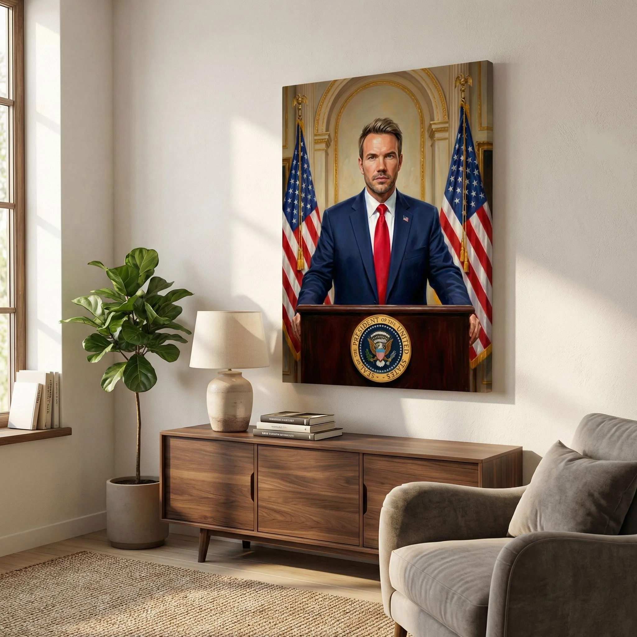 Realistic Oil Portrait Presidential Podium